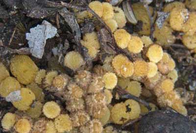Nitrogen fixing symbiotic association of the cycad Macrozamia riedlei. These coralloid roots at the soil surface which contain cyanobacteria that fix nitrogen. Other nitrogen fixing associations include bacteria in nodules of peas (the Fabaceae) and actinomycete nodules in several other plant families. |